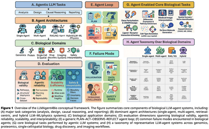 Large language models (LLMs) are evolving from passive predictors into agentic systems capable of planning, tool-use, and multimodal reasoning. This shift is especially consequential for biology, where complex, noisy, and multi-scale data require adaptive and integrative computational strategies. In this review, we provide the first systematic synthesis of LLM-based agents across genomics, molecular biology, imaging, biomedical analysis, and automated bioinformatics workflows. We analyze >60 emerging systems and organize them within a unifying framework that characterizes agentic traits, such as autonomous decision-making, external tool invocation, memory, and self-correction. Across domains, agentic LLMs show early promise in enabling multi-step analysis, linking heterogeneous evidence, and supporting exploratory scientific tasks. At the same time, our comparative assessment highlights consistent challenges, including unstable reasoning, limited biological grounding, retrieval misalignment, and barriers to reproducibility and biosafety. We conclude by outlining opportunities for trustworthy and collaborative biological agents, including multimodal integration, closed-loop experimental design, and robust evaluation practices. This survey aims to clarify the emerging landscape and chart a path toward reliable agentic systems for biological discovery.
